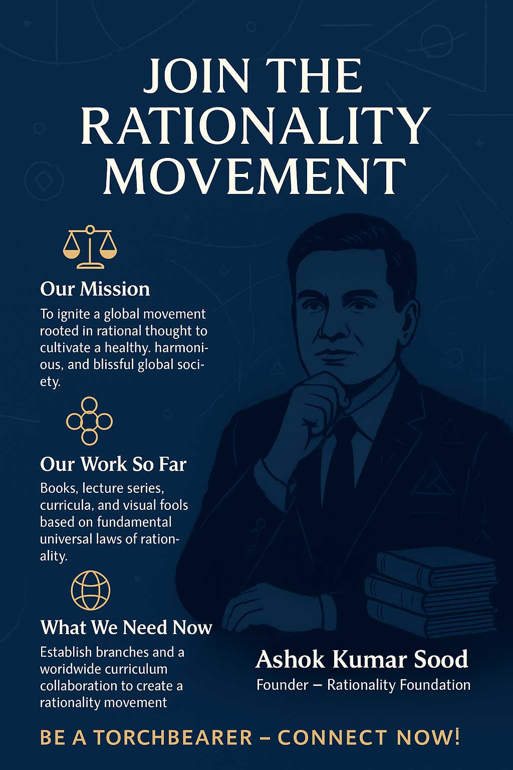 Connecting Minds. Inspiring Thought. Creating Change. Empowering Minds Through Rational Thought Read More How we started? Read more We envision a future where rationality guides decisions, fostering peace, progress, and connectedness across cultures and generations. What we do Read more We Find & Fund Support changemakers and initiatives aligned with rational values. We Educate Develop and deliver rationality-based learning programs. We Provide Connect individuals to experts, tools, and guidance as required. We Inspire Promote thoughtful living through stories, talks, and ideas. Our Partners